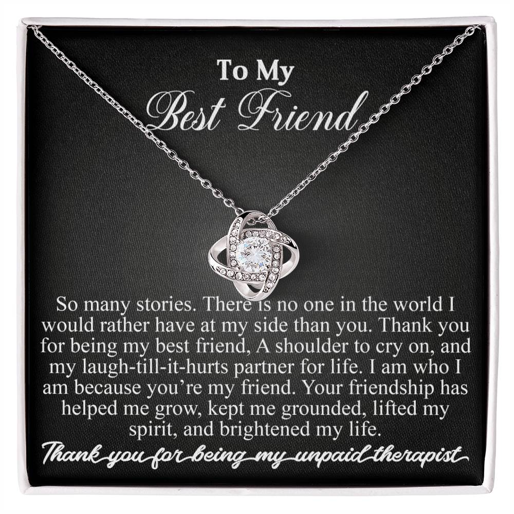 Imagine her reaction receiving this beautiful Love Knot Necklace. Representing an unbreakable bond between two souls, this piece features a beautiful pendant embellished with premium cubic zirconia crystals. Surprise your loved one with this gorgeous gift today!